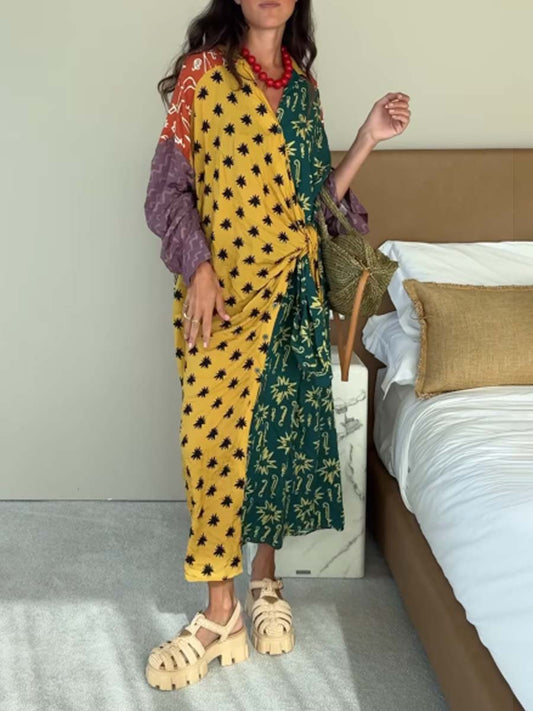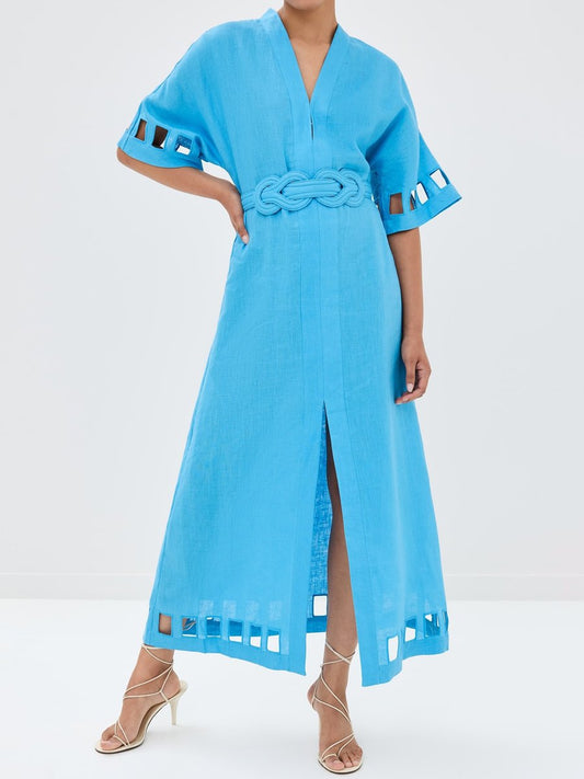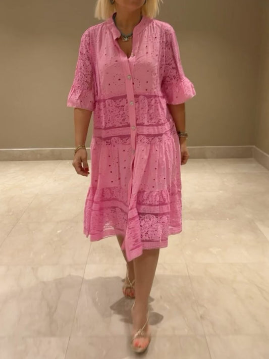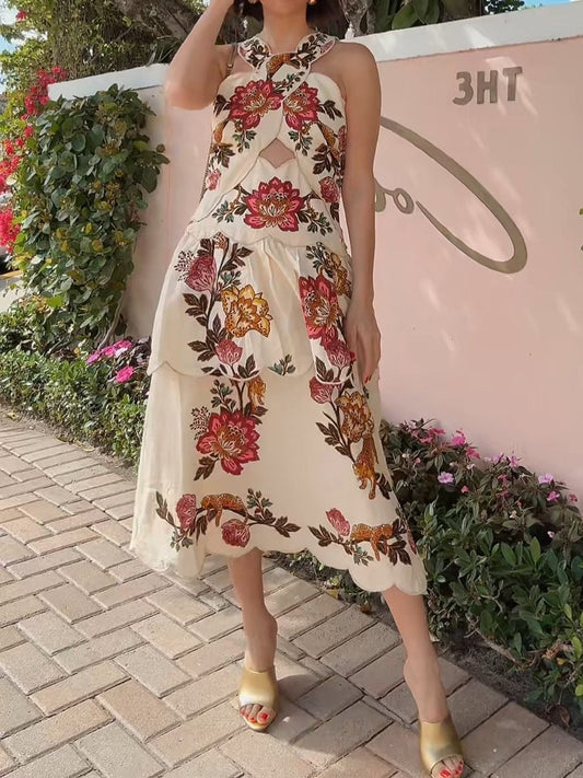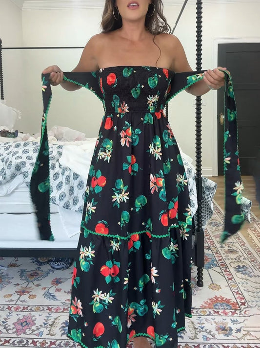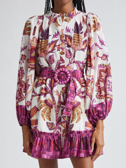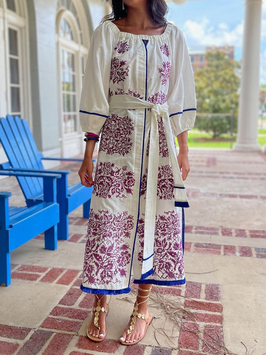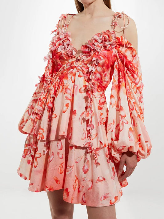 One Sleeve Ruffle Hem Floral Embroidery Dress