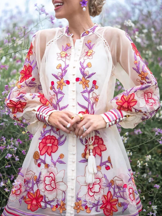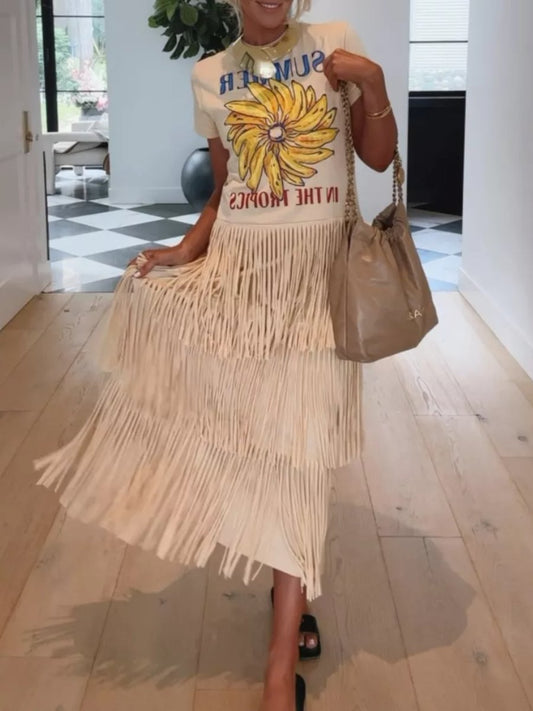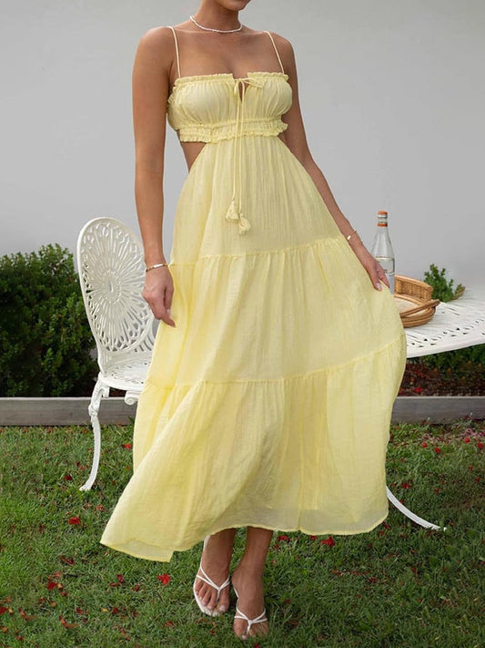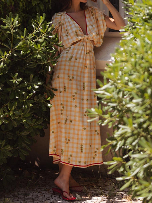 Ruffled Sleeve V Neck Printed Tie Up Dress