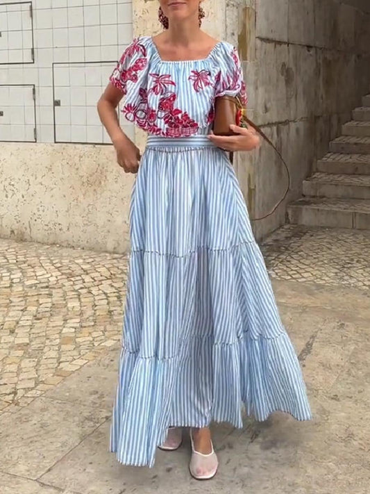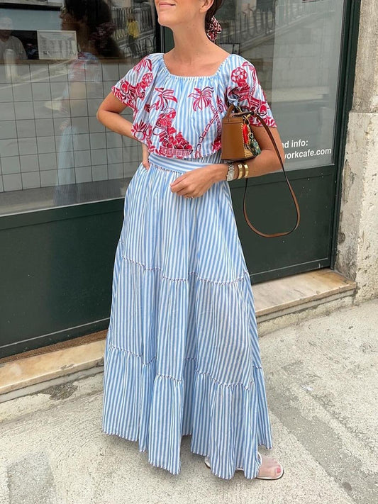 Off Shoulder Striped Print Lace Up Maxi Dress