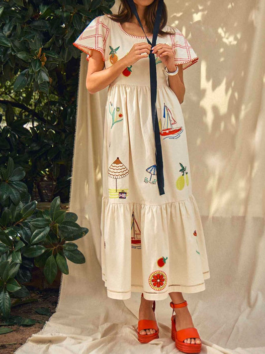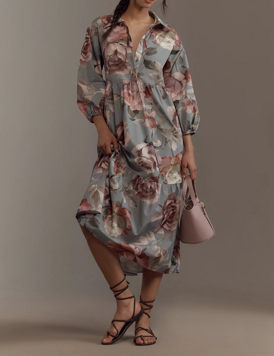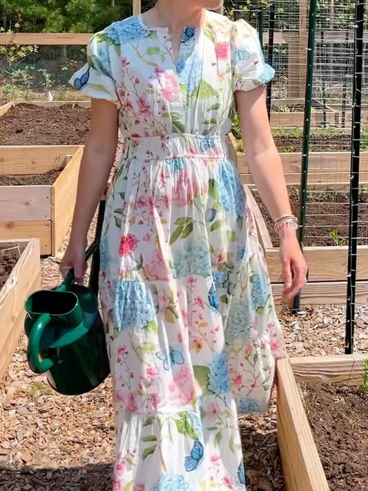 Floral Print Asymmetrical Hem Ruffles Square Neck Dress