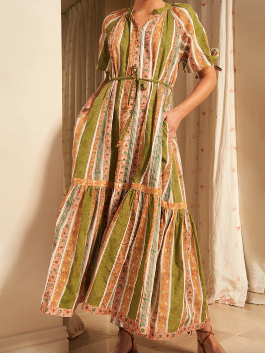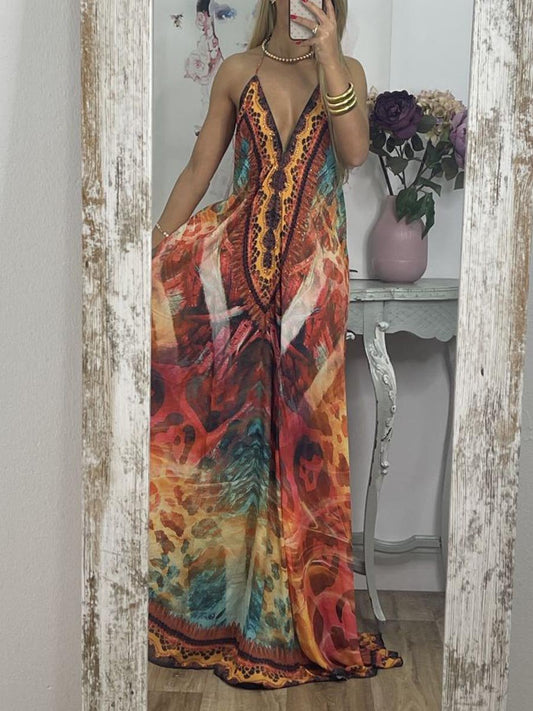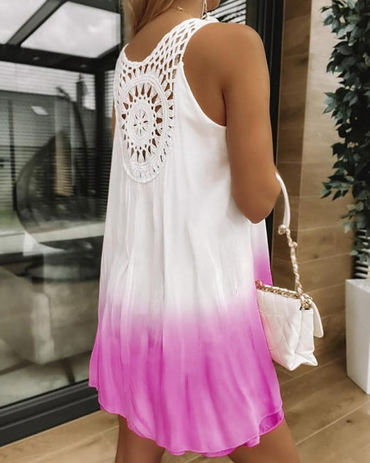 Gradient Tie Dye Print Hollow-out Crochet Lace Summer Dress