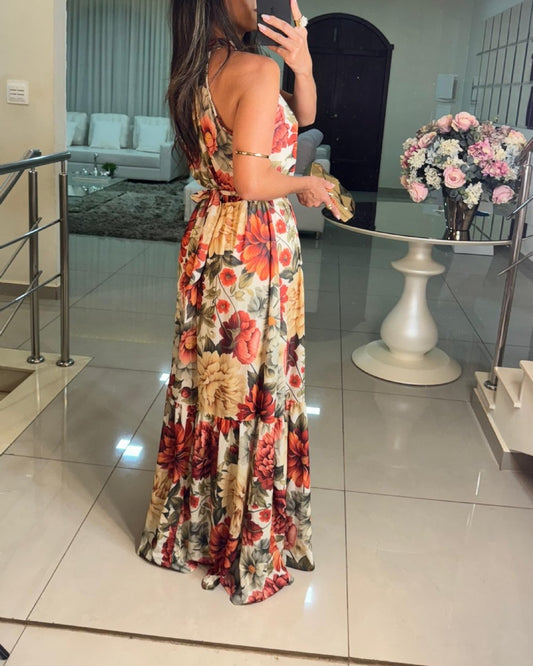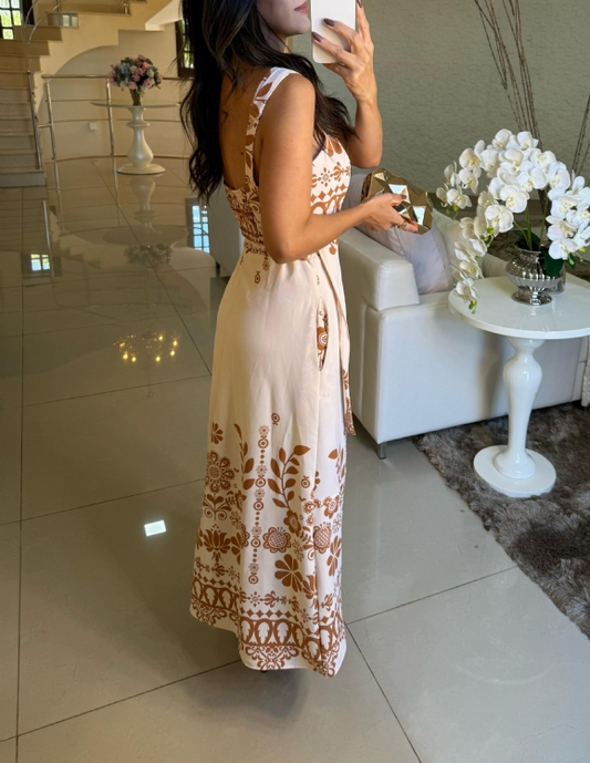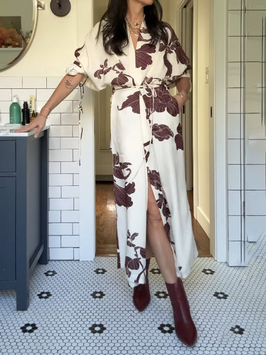 Hot Stamping V Neck Long Sleeve Maxi Dress