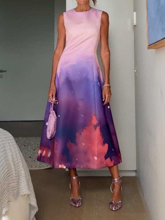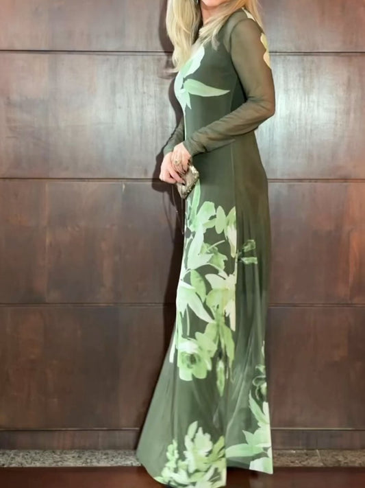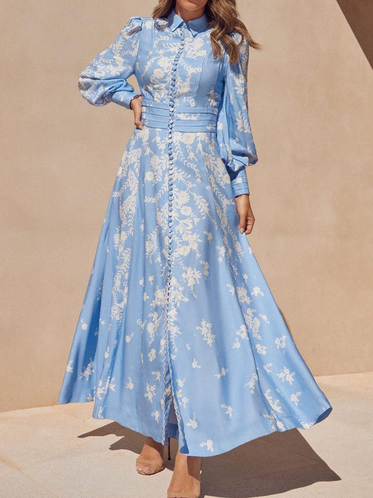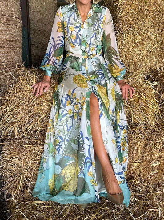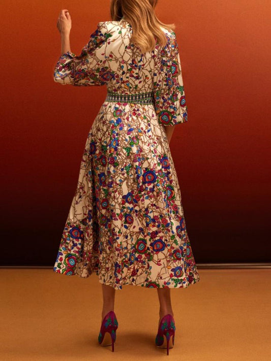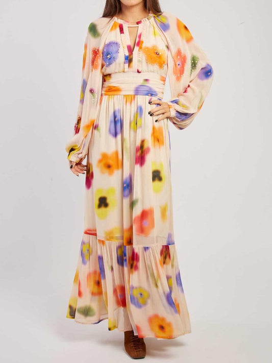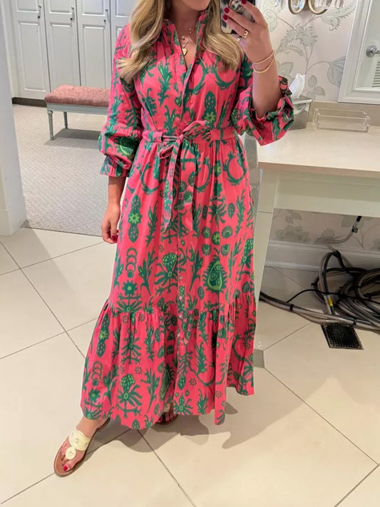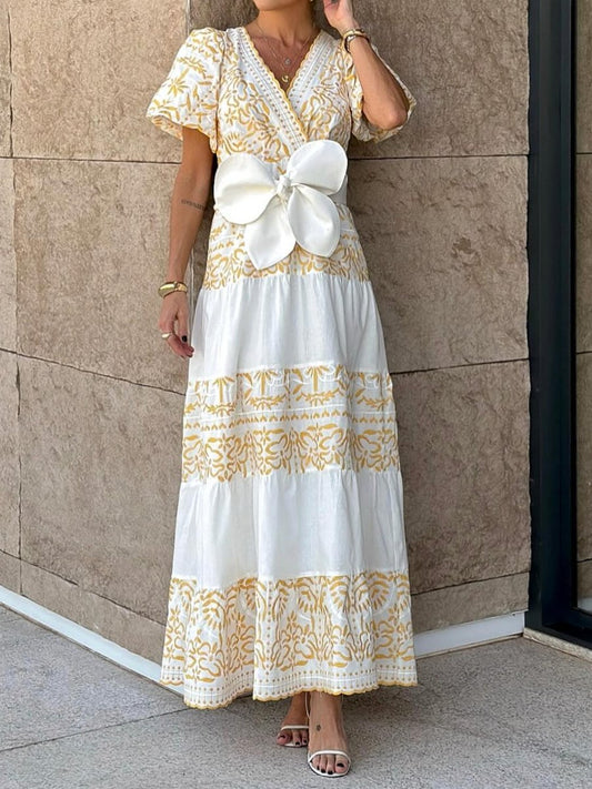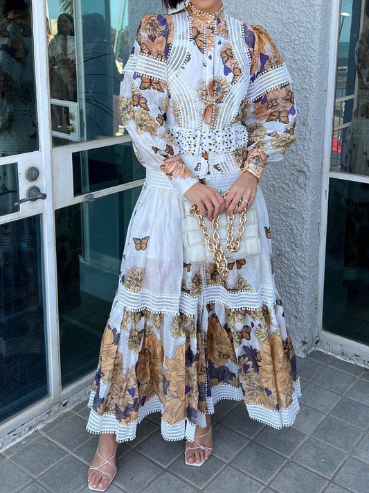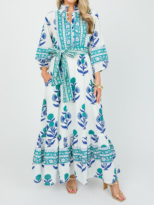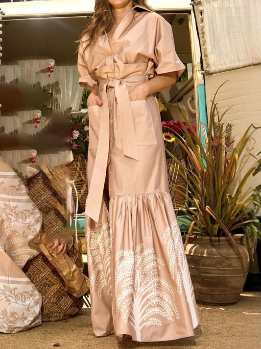 Printed Patchwork Lace Up Pockets Maxi Dress