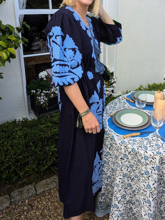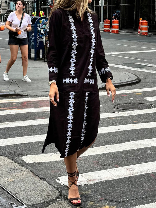 Embroidered Loose Elegant Lace Up Dress