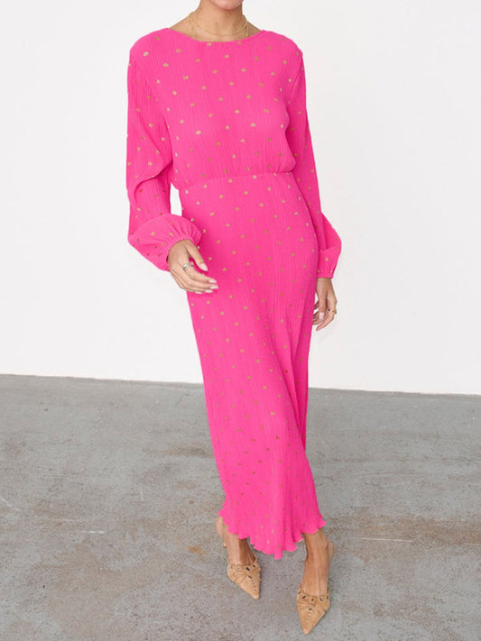 Crew Neck Long Sleeve Printed Dress