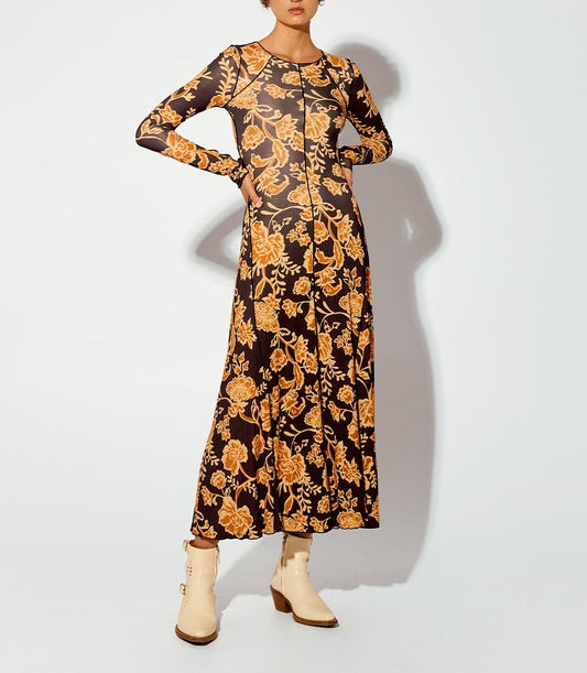 Women's Golden Toned Vine Floral Dress