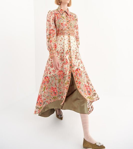 Floral Print Long Sleeve Maxi Shirt Dress