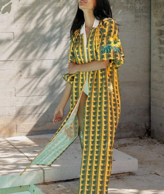 Yellow Printed Short Sleeve Maxi Dress