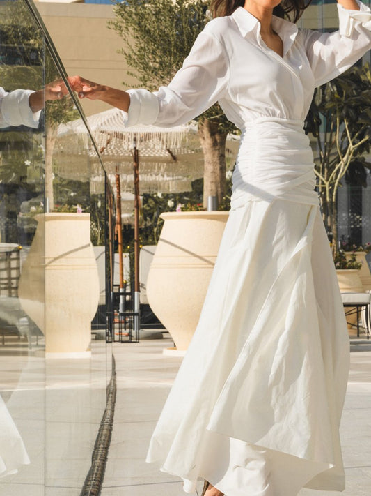 Asymmetric Hem Mesh Long Sleeve Maxi Dress