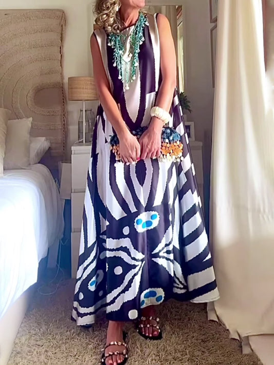 Elegant V-neck Color Block Sleeveless Two Pieces Dress