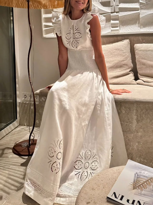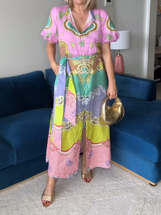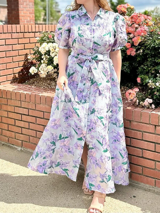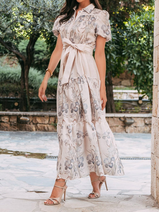 Floral Print Short Sleeve Lace Up Maxi Dress