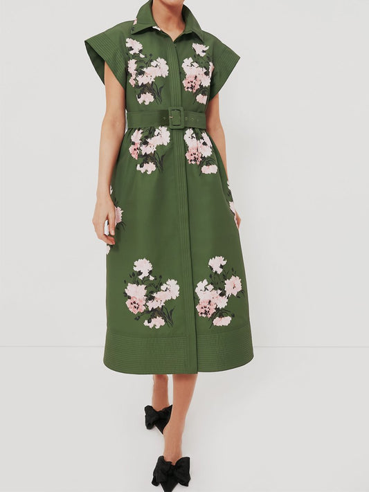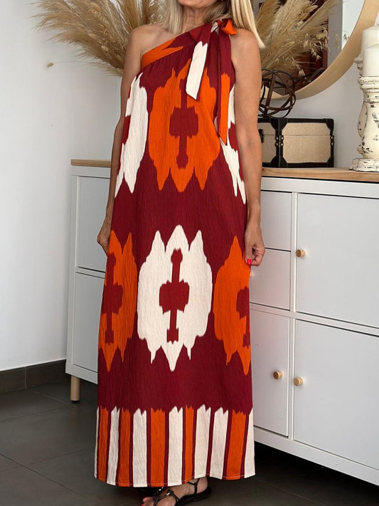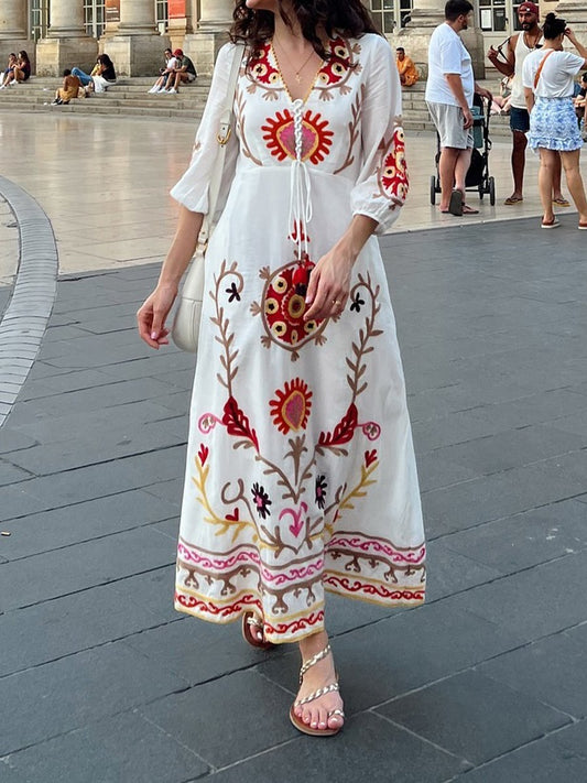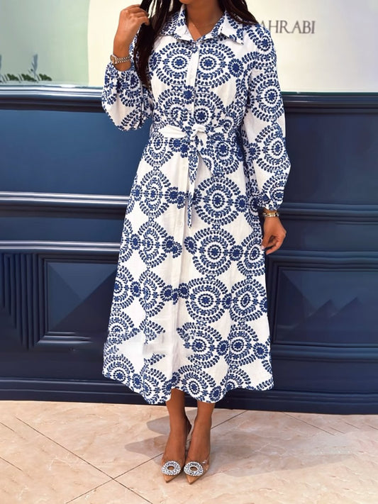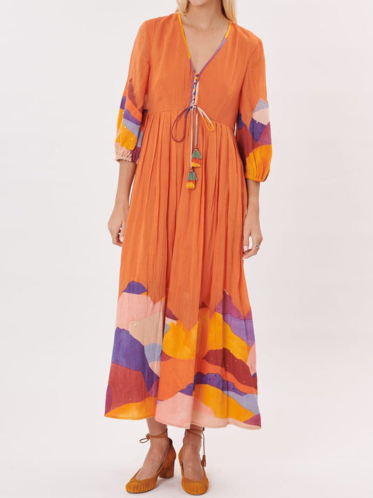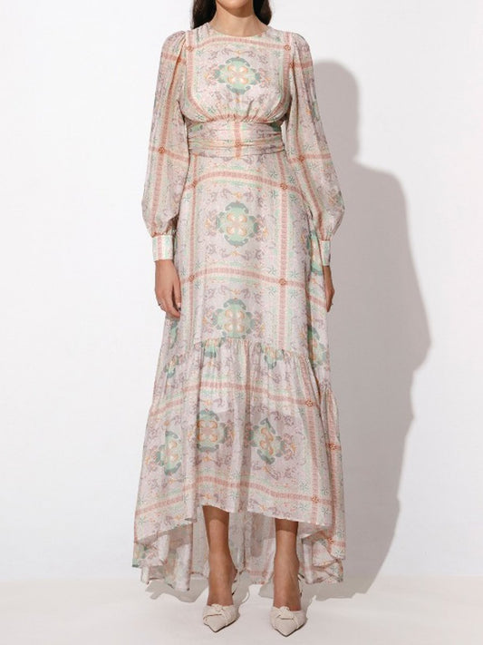 Floral-print Lace-up Long Sleeve Maxi Dress