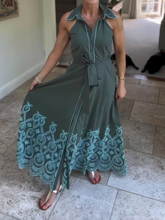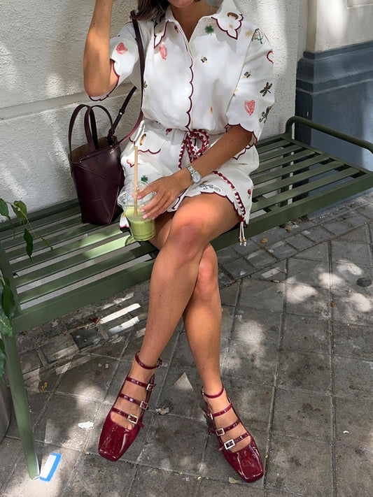 Printed Embroidered Shirt Dress