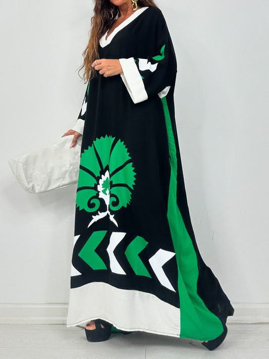 V Neck Printed Loose Maxi Dress