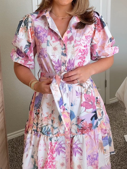 Printed Button Up Shirt Dress
