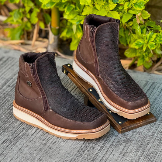 Men's Hand-Painted Exotic Brown Leather Boots