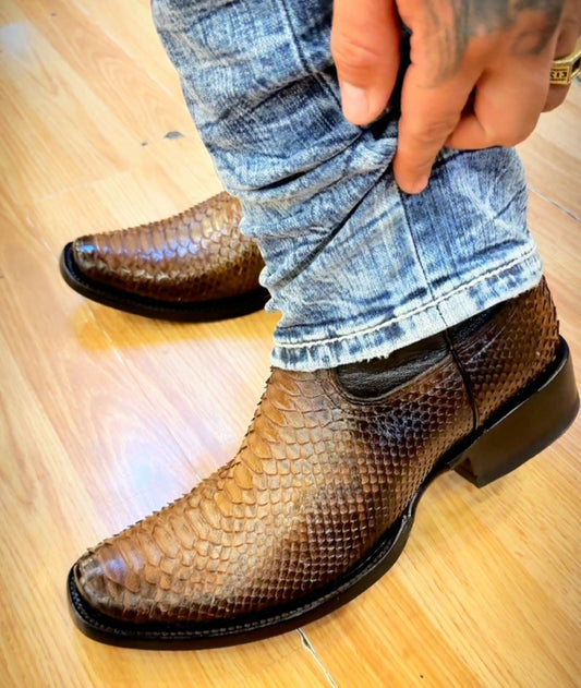 Handmade Vintage Printed Python Boots