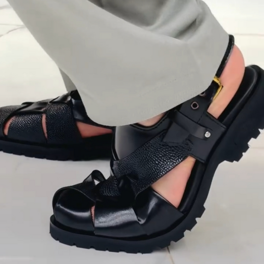 Black Milled Glossed Peshawari Sandals