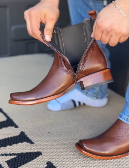 Artisanal Brown Python-Embossed Leather Men's Boots