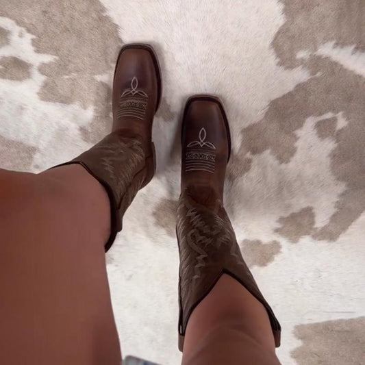 Women's Embroidered Martin Boots Ethnic Square Toe Boots
